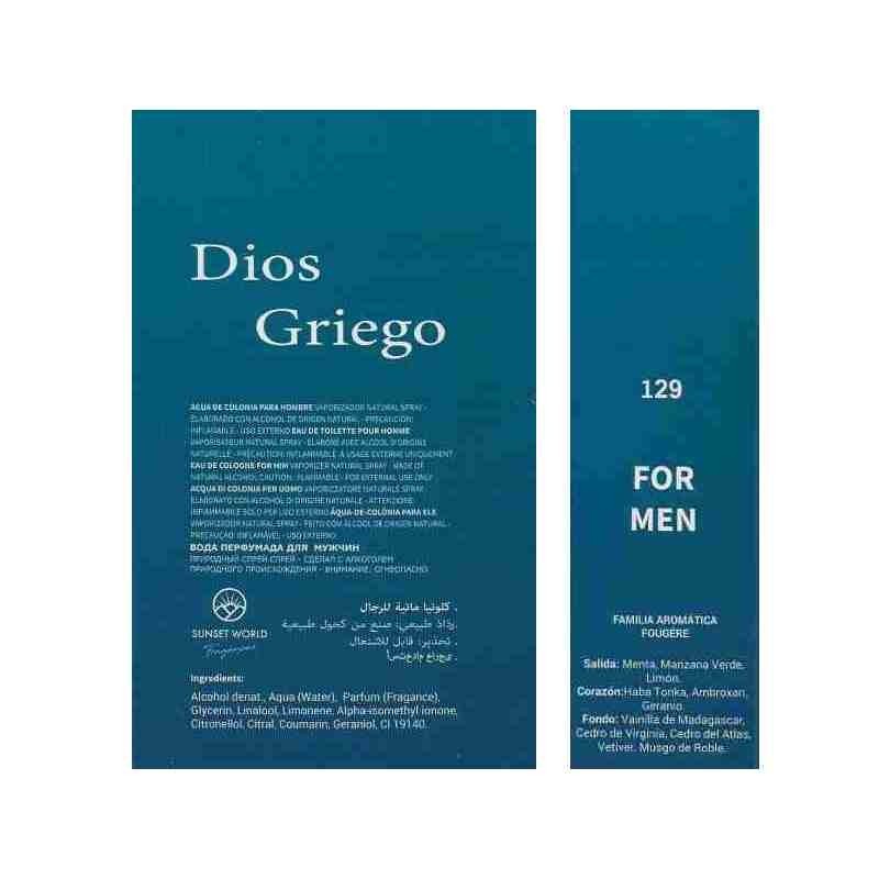 DIOS GRIEGO está fabricado con su propia formula, su pirámide olfativa está compuesta por una combinación de esencias naturales o sintéticas que le confieren un aroma muy similar al de otras fragancias muy apreciadas por el usuario.